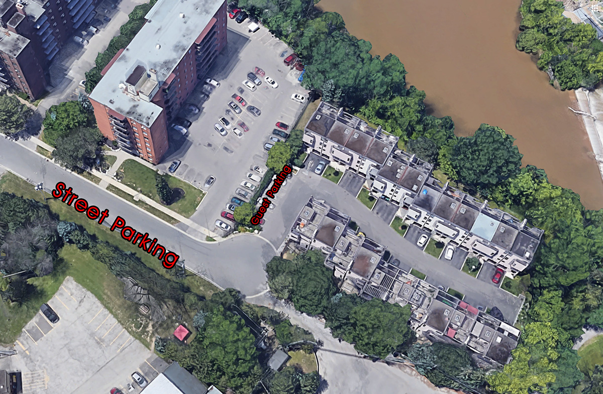 Guest parking is located at the entrance of the complex. There is additional city parking on the street right across the complex. For more additional overnight parking Queen Street has parking and the Go Train Streetsville station.